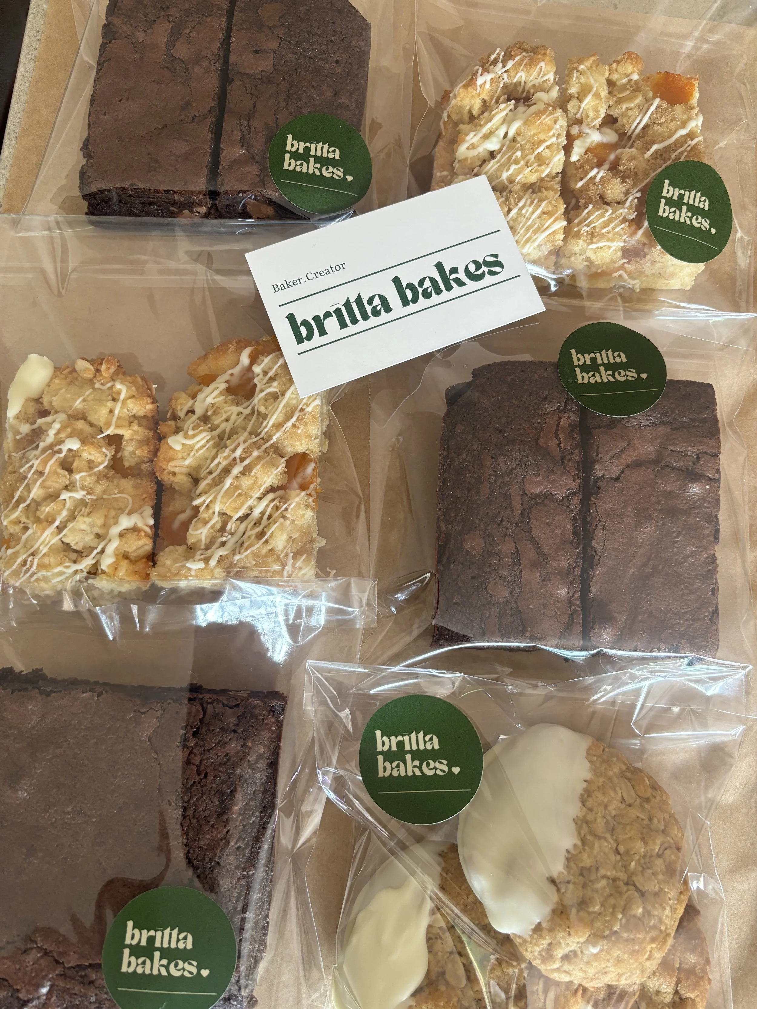 Hello, my name is Britt Thomas creator of Britta Bakes. Growing up I have always been fascinated by sweets, whether around a festive table topped with lots of desserts, my head in a women’s weekly cake book or with my hands in my gran's cookie box. I love creating a sweet that someone is impressed by, and seeing the enjoyment in their face when eating one of my white chocolate and raspberry muffins or caramel slice.